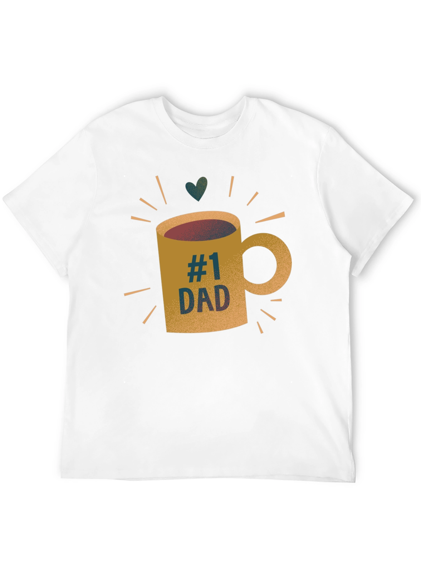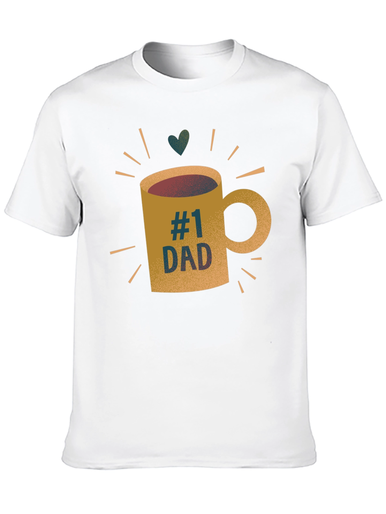 Show your appreciation for dad with this stylish black t-shirt featuring a unique graphic design. The shirt showcases a coffee mug illustration with the text "#1 DAD" in a trendy, distressed font, topped with a charming heart accent. The design radiates with sunbeam-like lines, adding a touch of warmth. Made from what appears to be a soft and breathable fabric, this tee offers both comfort and style. It's an ideal gift for Father's Day, birthdays, or just to let dad know he's appreciated. This cool and casual tee is perfect for everyday wear, whether he's running errands or relaxing at home.