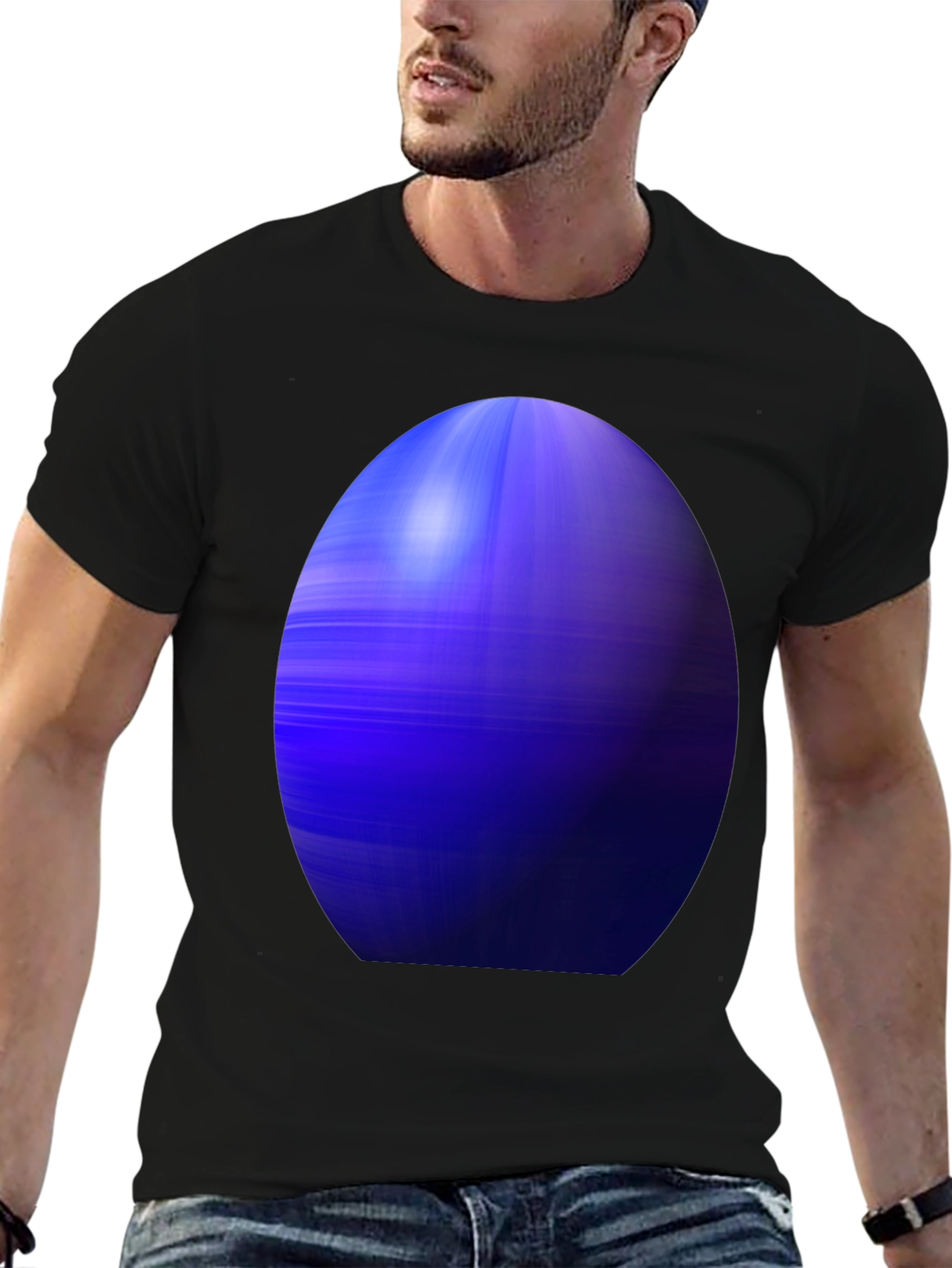 Show off your unique style with this eye-catching graphic tee. Featuring a striking, abstract blue orb design on a classic black tee, this shirt is sure to turn heads. The smooth gradient and subtle textures within the orb create a captivating visual effect. Made from a comfortable and breathable fabric, this tee is perfect for everyday wear. Pair it with jeans for a casual look or dress it up with chinos for a more polished ensemble. A must-have addition to any modern wardrobe!