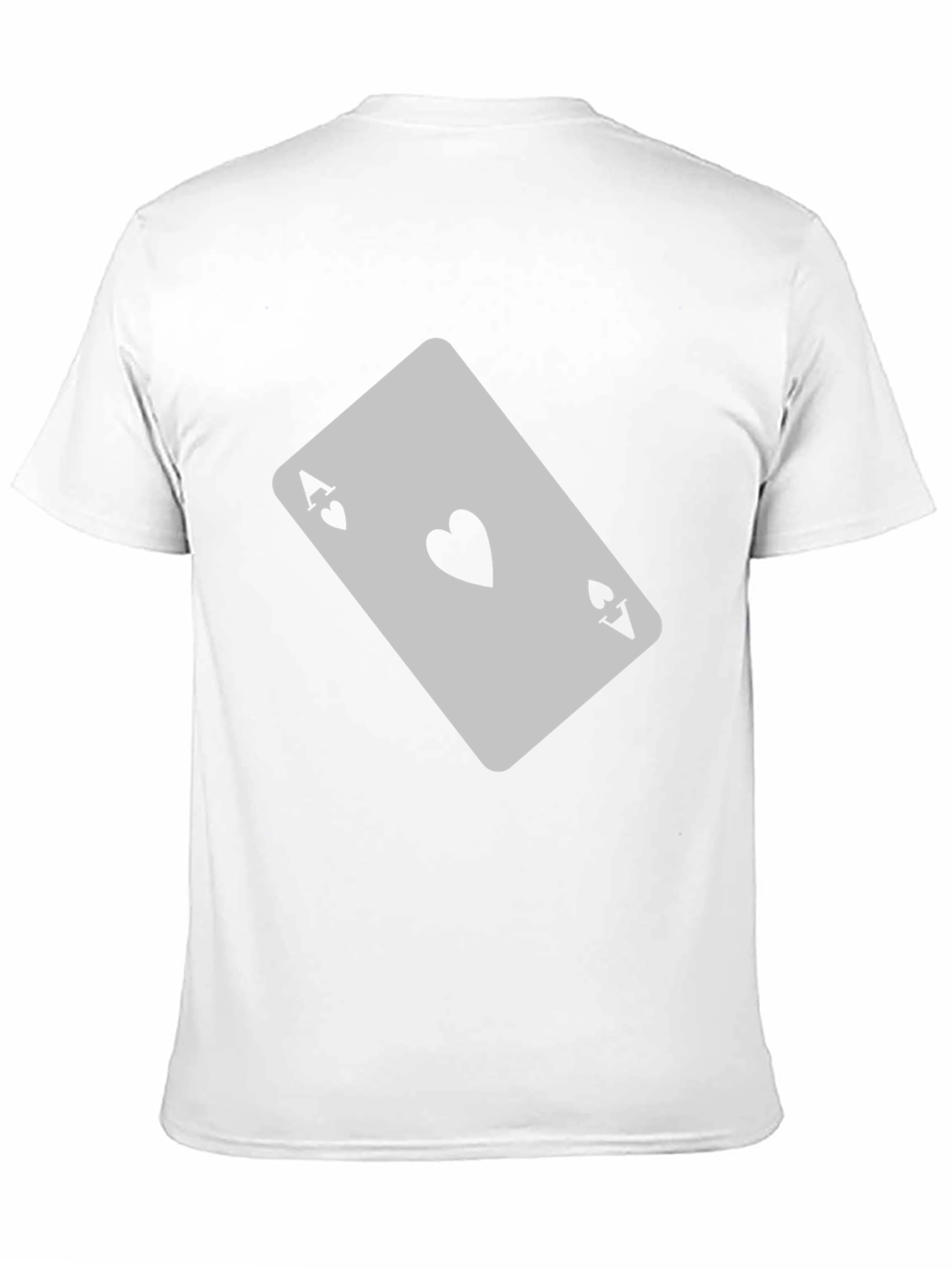 Show your hand with this stylish black graphic t-shirt. This casual tee features a bold design of the Ace of Hearts playing card on the chest, perfect for card players and anyone with a love for unique graphics. The shirt appears to be made from a comfortable, soft fabric, making it ideal for everyday wear. Dress it up with jeans or keep it casual with shorts. A versatile addition to any wardrobe, this t-shirt is sure to turn heads.