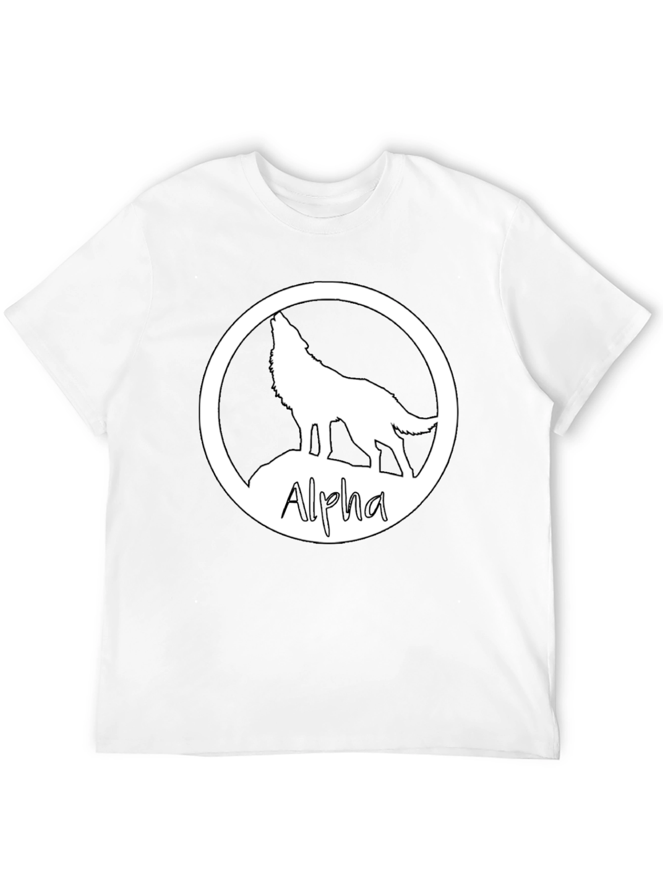 Show off your wild side with this bold black T-shirt! Featuring a striking white graphic of a wolf howling within a circular frame and the word "Alpha" printed below, this tee makes a statement. Made from a comfortable, breathable fabric, it's perfect for everyday wear. Pair it with jeans for a casual look, or dress it up with a jacket. This versatile T-shirt is sure to become a wardrobe favorite for those who embrace their inner wolf. Get yours today and unleash your alpha spirit!