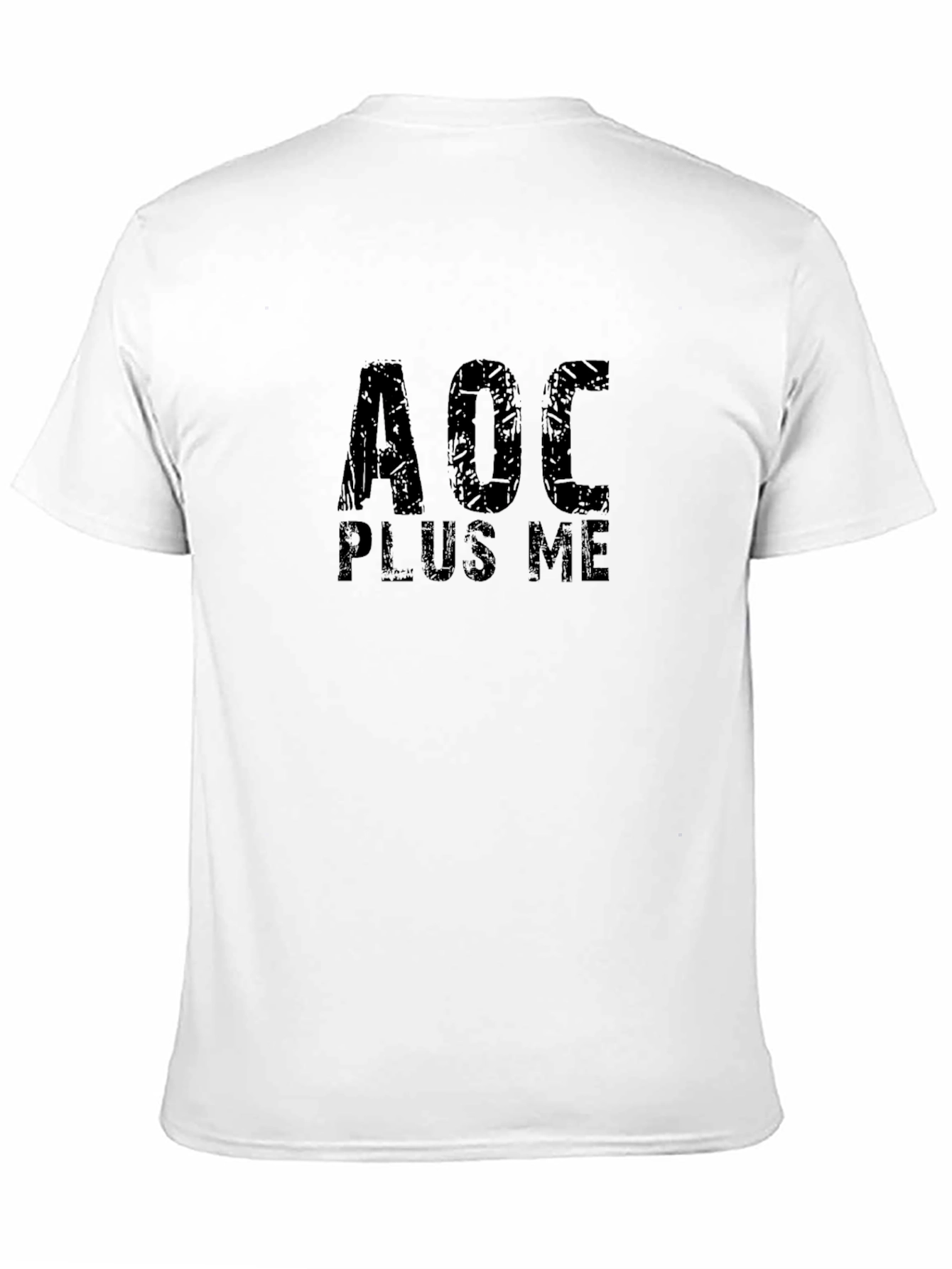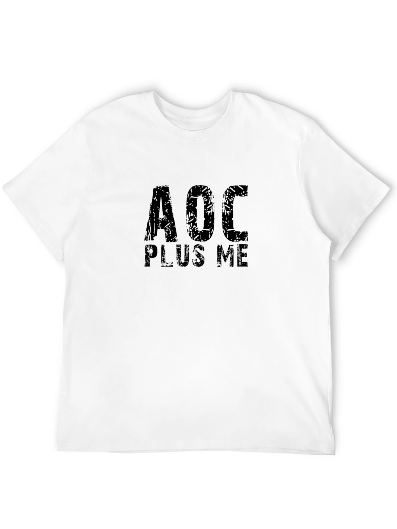 Show your support with this bold black t-shirt. Featuring the text "AOC PLUS ME" in a distressed, block letter design, this tee makes a statement. The classic crew neck and short sleeves offer a comfortable, casual fit for everyday wear. Made from a soft, breathable fabric, it's perfect for rallies, casual outings, or expressing your views. Pair it with jeans or shorts for a cool, politically charged look. Make a statement with this unique graphic tee!