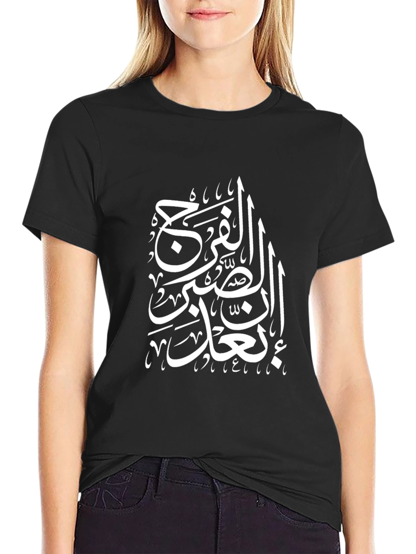 This striking black t-shirt features an elegant white graphic design of Arabic calligraphy. The eye-catching design is printed prominently on the front of the shirt, making it a statement piece for casual wear. The t-shirt appears to be made from a soft and comfortable material, perfect for everyday use. Showcase your appreciation for art and culture with this unique tee. The distinct artwork is sure to draw attention and spark conversation. Ideal for pairing with jeans, shorts, or casual pants, this versatile t-shirt is a wardrobe essential. Wear it for casual outings, cultural events, or simply to express your individuality.