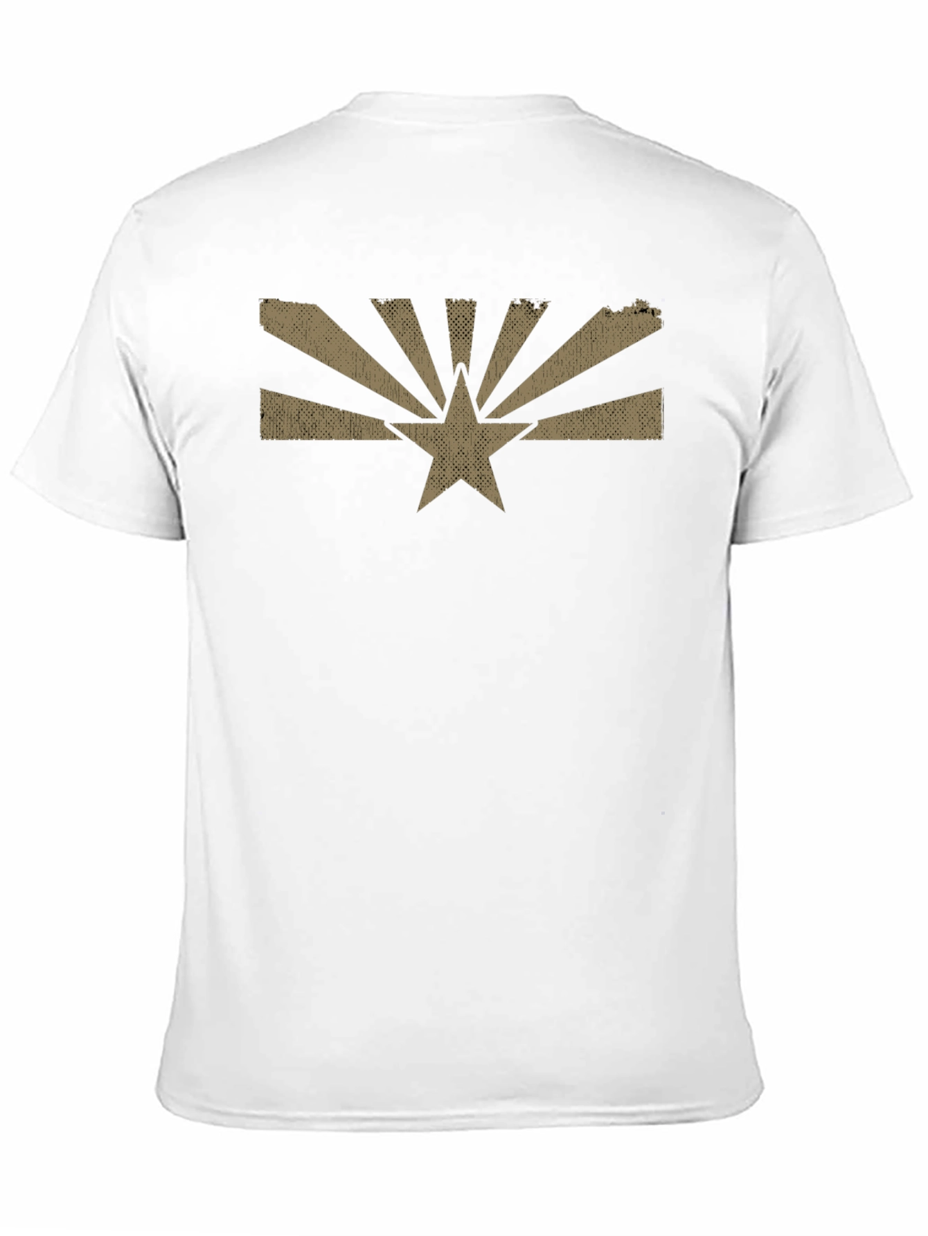 Show your Arizona pride with this stylish black t-shirt. Featuring a bold, distressed-style graphic of the Arizona state flag in a muted tan or khaki color. The design includes the iconic star and sunburst pattern. This classic crew-neck tee is perfect for everyday wear, casual outings, or showing off your Arizona roots. The shirt appears to be made of a soft, comfortable material, ideal for all-day comfort. A great addition to any wardrobe or a thoughtful gift for Arizona natives and enthusiasts. Pair it with jeans, shorts, or khakis for a versatile, relaxed look.