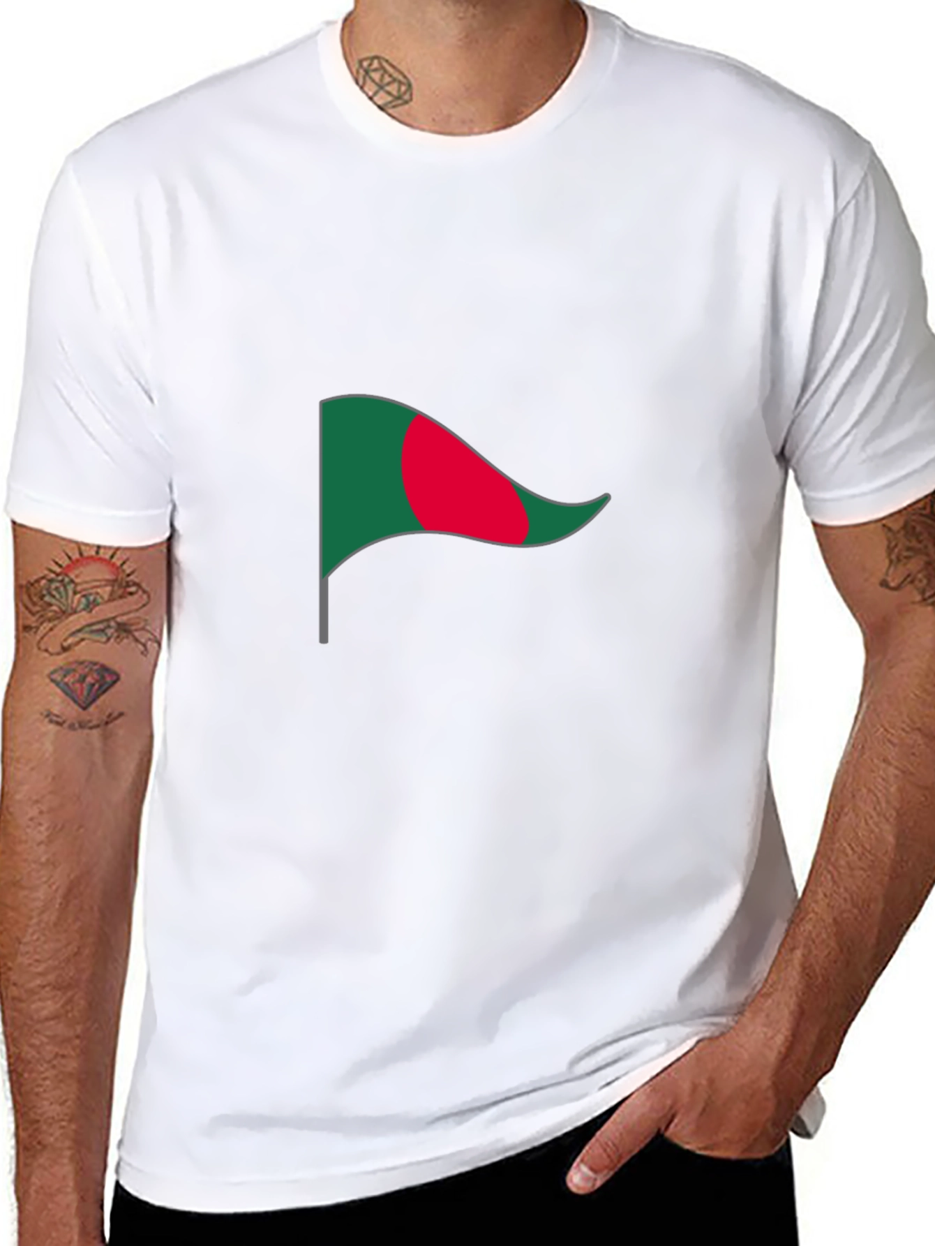 Show your national pride with this stylish black T-shirt featuring the flag of Bangladesh. The flag graphic is prominently displayed on the front, showcasing a vibrant green background with a bold red circle. The design includes a gray pole for the flag. Made from comfortable cotton fabric, this tee is perfect for everyday wear. Whether you're celebrating national holidays, attending cultural events, or simply expressing your heritage, this T-shirt is a great way to make a statement. Pair it with jeans or shorts for a casual, patriotic look.