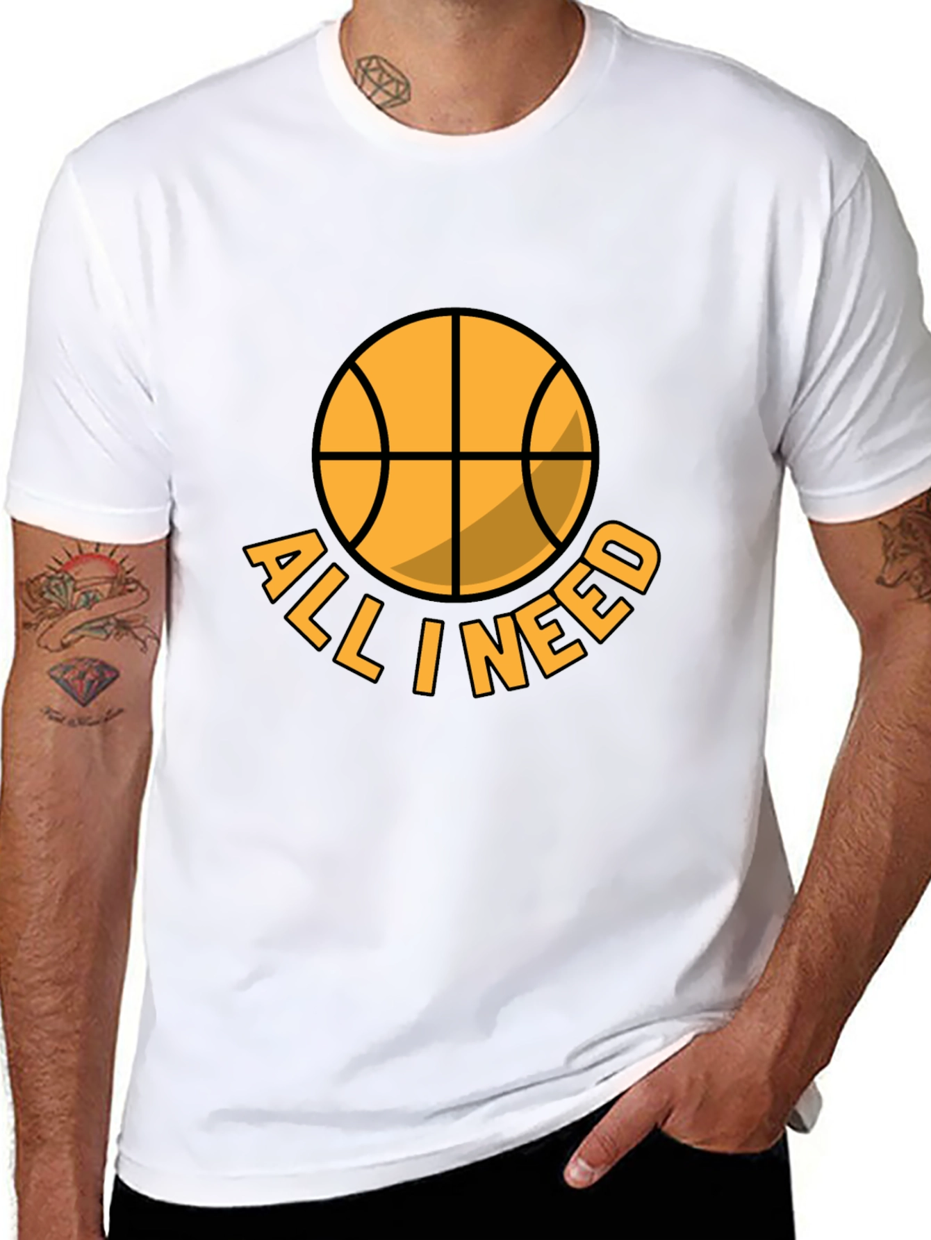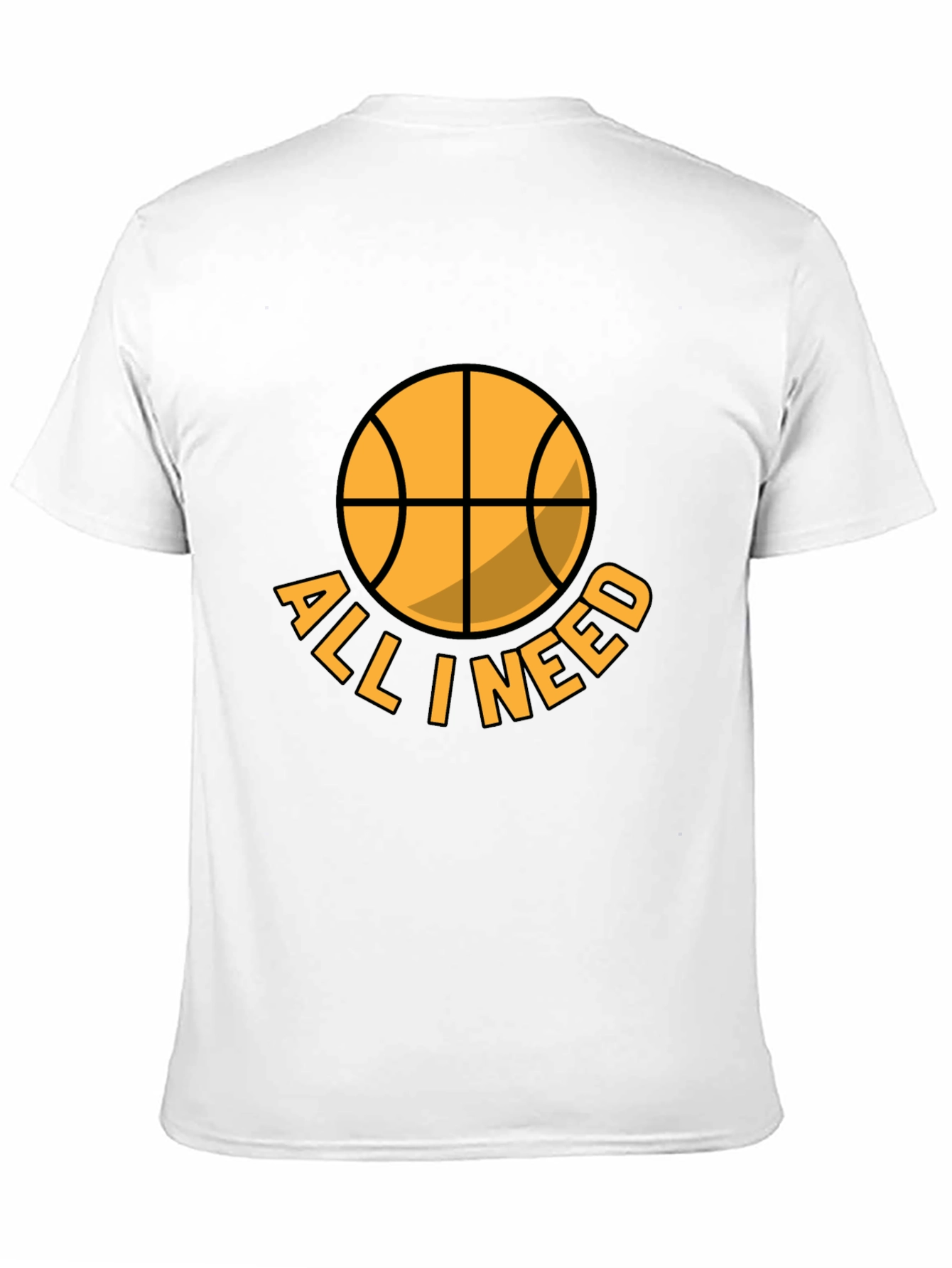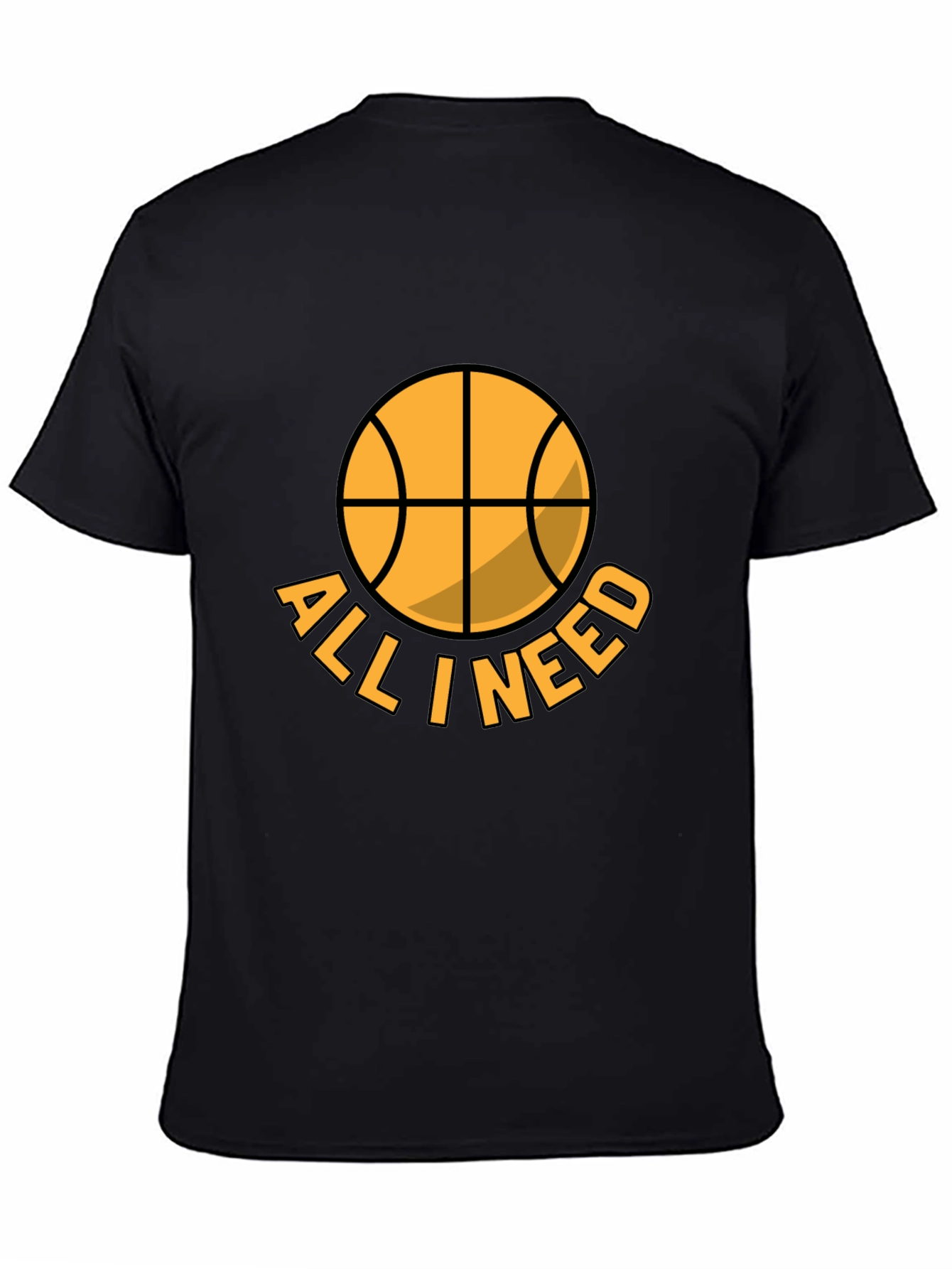 Show your love for basketball with this stylish graphic tee! This black t-shirt features a vibrant orange basketball graphic with the words "ALL I NEED" in a curved design. Made from a comfortable material, this tee is perfect for everyday wear. Whether you're hitting the court or hanging out with friends, this basketball tee is sure to make a statement. It's a great gift for basketball players and fans alike. Get yours today and show your passion for the game!