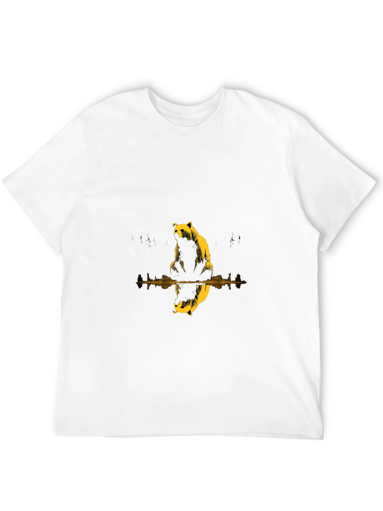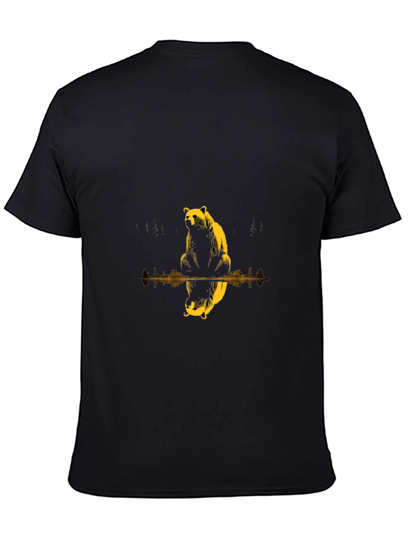 Show off your love for nature with this unique black t-shirt. The shirt features a striking graphic of a bear sitting above its reflective image, rendered in a vibrant yellow. Made from a comfortable, breathable fabric, this tee is perfect for everyday wear. The design is simple yet eye-catching, making it a versatile addition to any wardrobe. Wear it casually with jeans, or dress it up with a jacket. Get ready to turn heads!