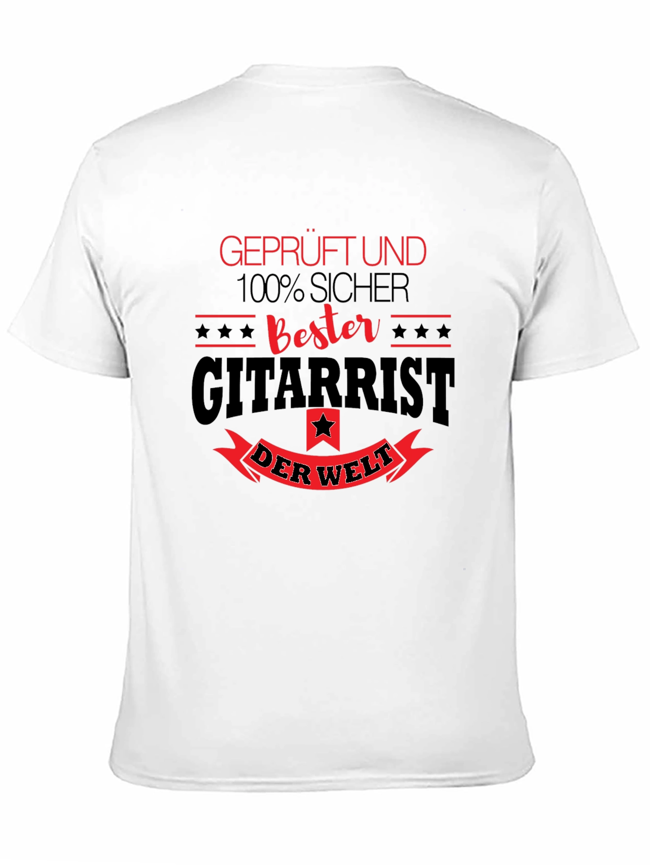 Show off your love for music with this cool black tee. Featuring a bold graphic print, this shirt reads "Geprüft und 100% Sicher Bester GITARRIST DER WELT." This classic t-shirt is perfect for casual wear, concerts, music lessons, or just hanging out with friends. Made with soft, breathable fabric, this tee is comfy and durable. Makes a great gift for the guitar player in your life! Get yours today!