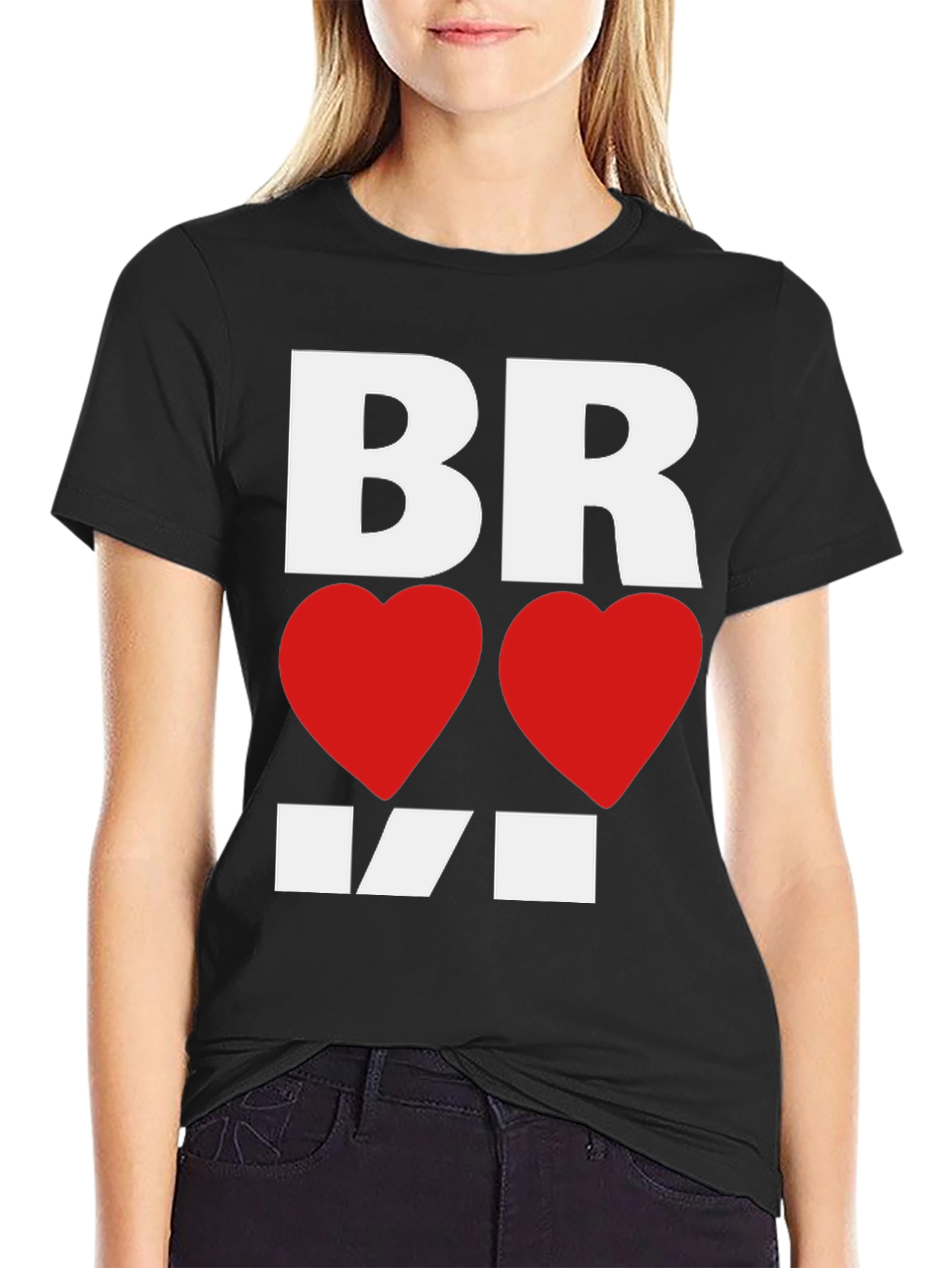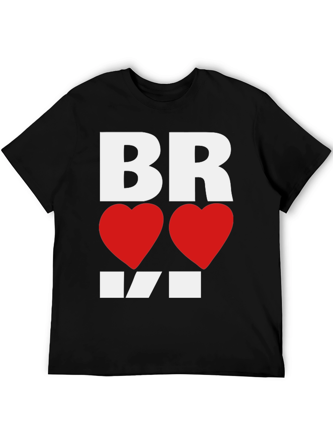 Show your love for Bralvi with this stylish black graphic tee! The shirt features a bold white "BR" at the top, followed by two vibrant red hearts in place of "O's", and a creatively designed "VI" in white below. Made from comfortable fabric, this tee is perfect for casual wear, showing support, or making a statement. Its eye-catching design ensures you'll stand out in any crowd. This unique tee is a must-have for anyone who appreciates Bralvi and wants to express their passion in a fashionable way. Grab yours today and wear your heart on your sleeve!