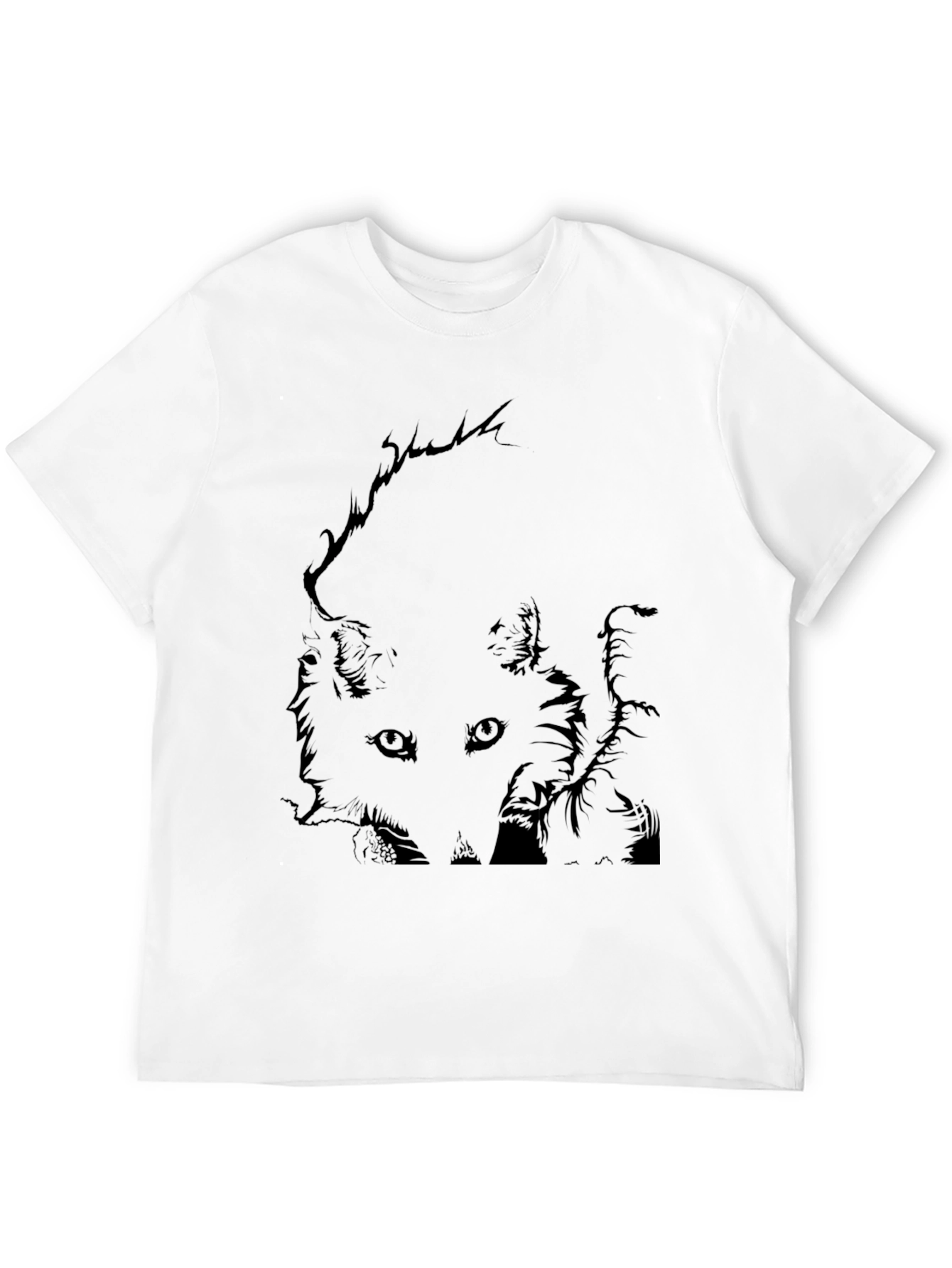 This stylish black t-shirt features a unique graphic print of a fox, making it a standout addition to any wardrobe. The design showcases the fox's face with intricate details, creating a captivating and modern look. Made from a comfortable and breathable fabric, this shirt is perfect for everyday wear. Whether you're heading out for a casual outing or simply relaxing at home, this tee offers both style and comfort. Its versatile design pairs well with jeans, shorts, or even layered under a jacket. Make a bold statement with this must-have fox graphic tee.