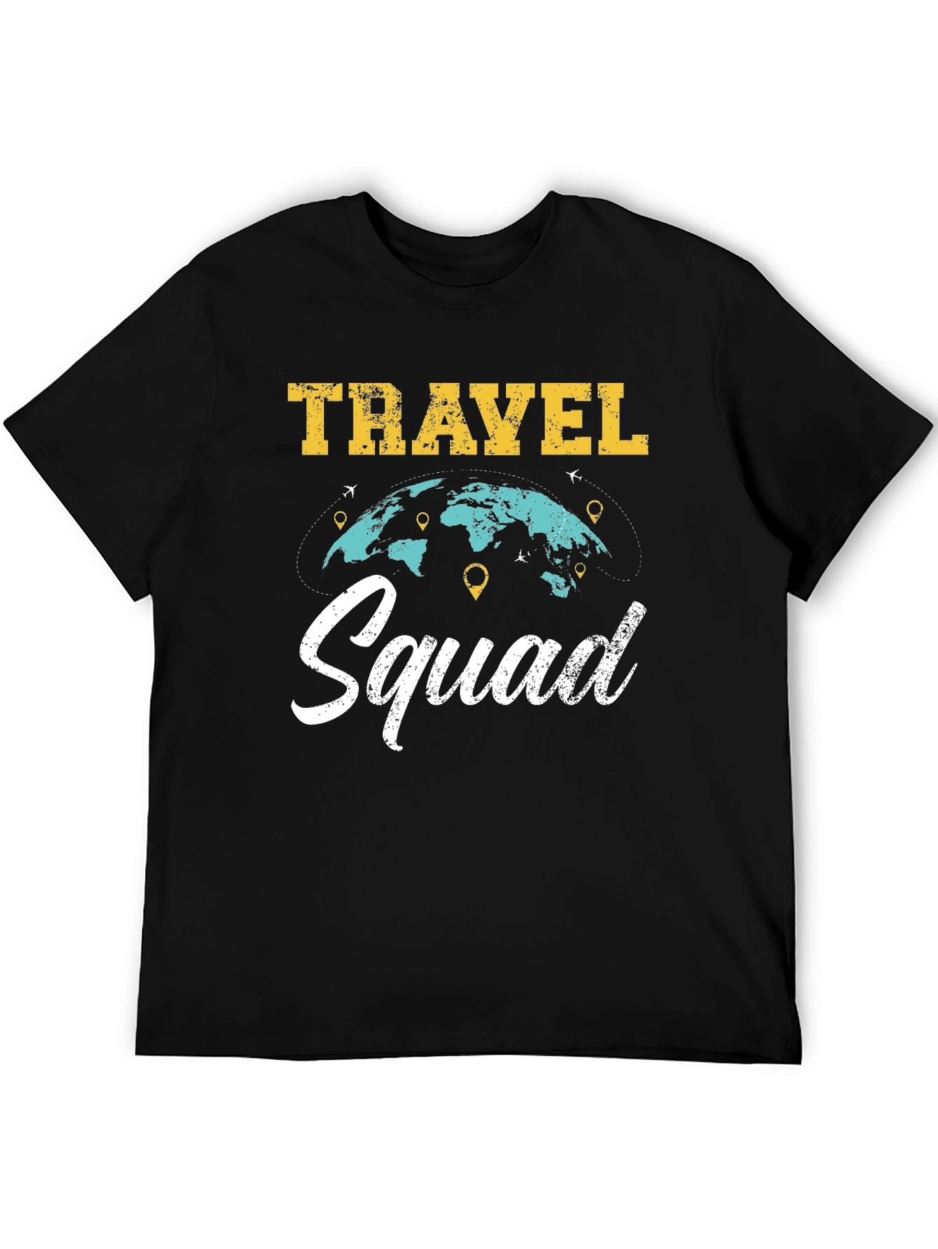 Show off your love for travel with this stylish black tee! The design features the text "TRAVEL" above a world map graphic, pinpointing destinations. Underneath, the word "Squad" is printed in a bold, script-like font, perfect for travel groups. Made from comfortable, breathable fabric, this t-shirt is ideal for casual wear or your next big adventure. Whether you're planning a trip around the world or just dreaming of one, let everyone know you're part of the travel squad. Grab yours today and get ready to explore!