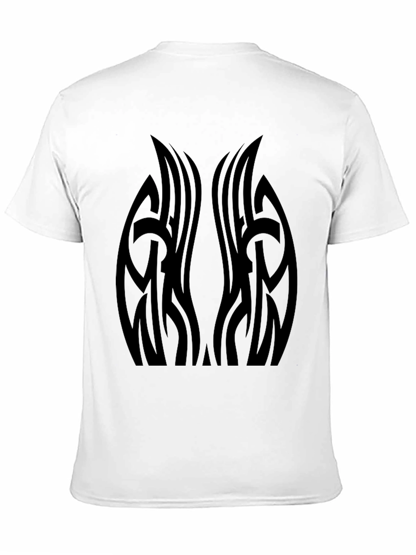 Elevate your casual wear with this striking black t-shirt. Crafted from a soft, breathable fabric, this tee features a bold, symmetrical tribal tattoo graphic on the front. The design adds an edgy and artistic flair, making it a standout piece in your wardrobe. The classic crew neck and short sleeves offer a comfortable fit, perfect for everyday wear. Pair it with jeans, shorts, or joggers for a versatile, stylish look. Ideal for those who appreciate unique designs and want to make a statement. Add this must-have tee to your collection today!