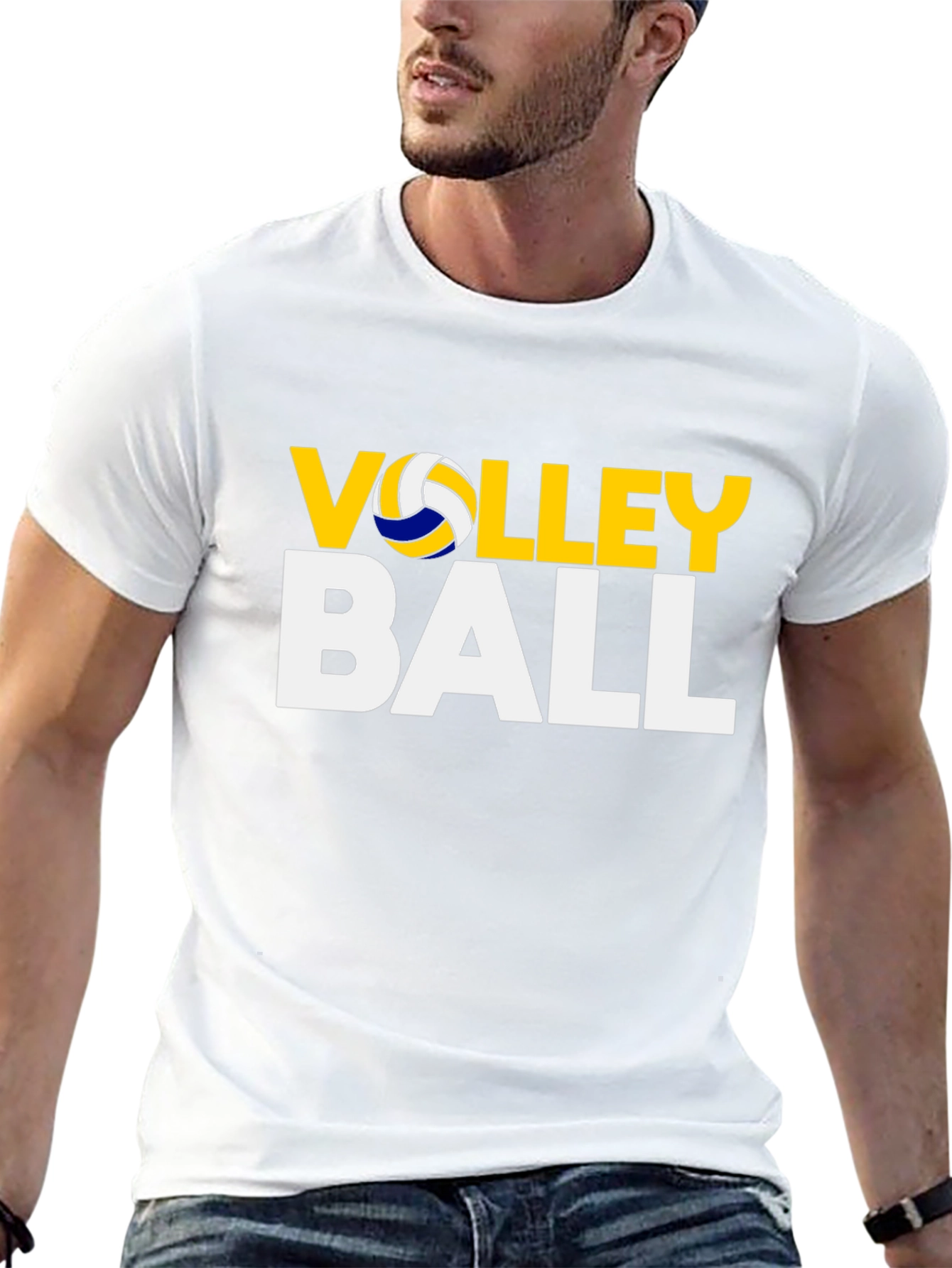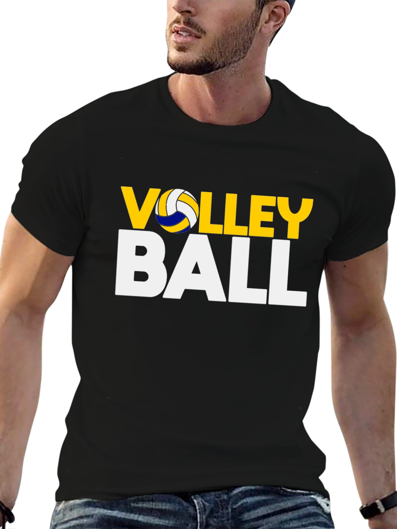 Show your love for volleyball with this stylish black t-shirt. The shirt features a bold graphic print with the word "VOLLEY" in yellow with a volleyball graphic replacing the "O," above the word "BALL" in white. Made from comfortable, breathable material, this t-shirt is perfect for casual wear, sports practice, or cheering on your favorite team. The classic black color makes it versatile and easy to pair with any outfit. A great gift for volleyball players and fans alike. This tee is a must-have addition to any volleyball enthusiast's wardrobe.