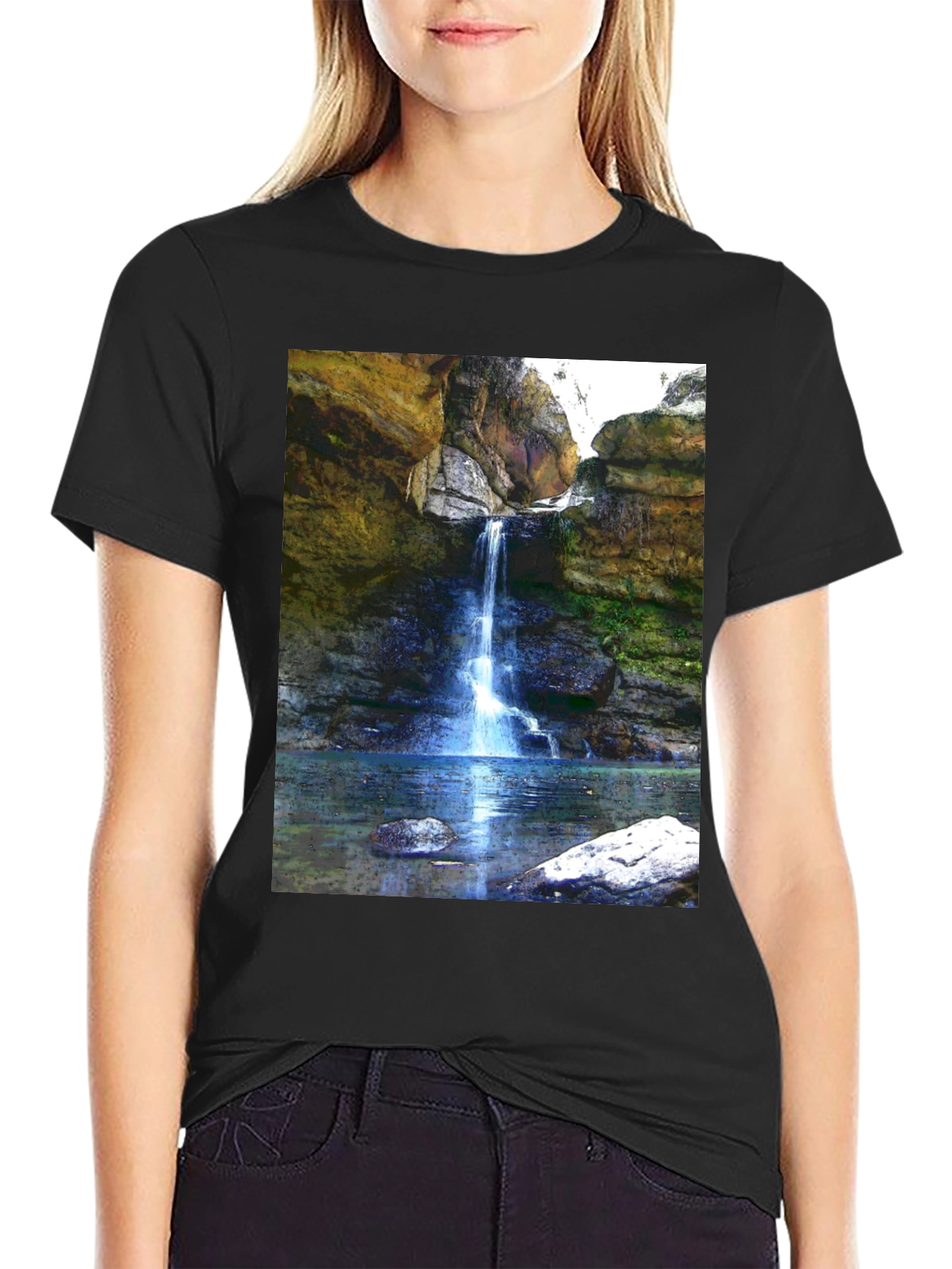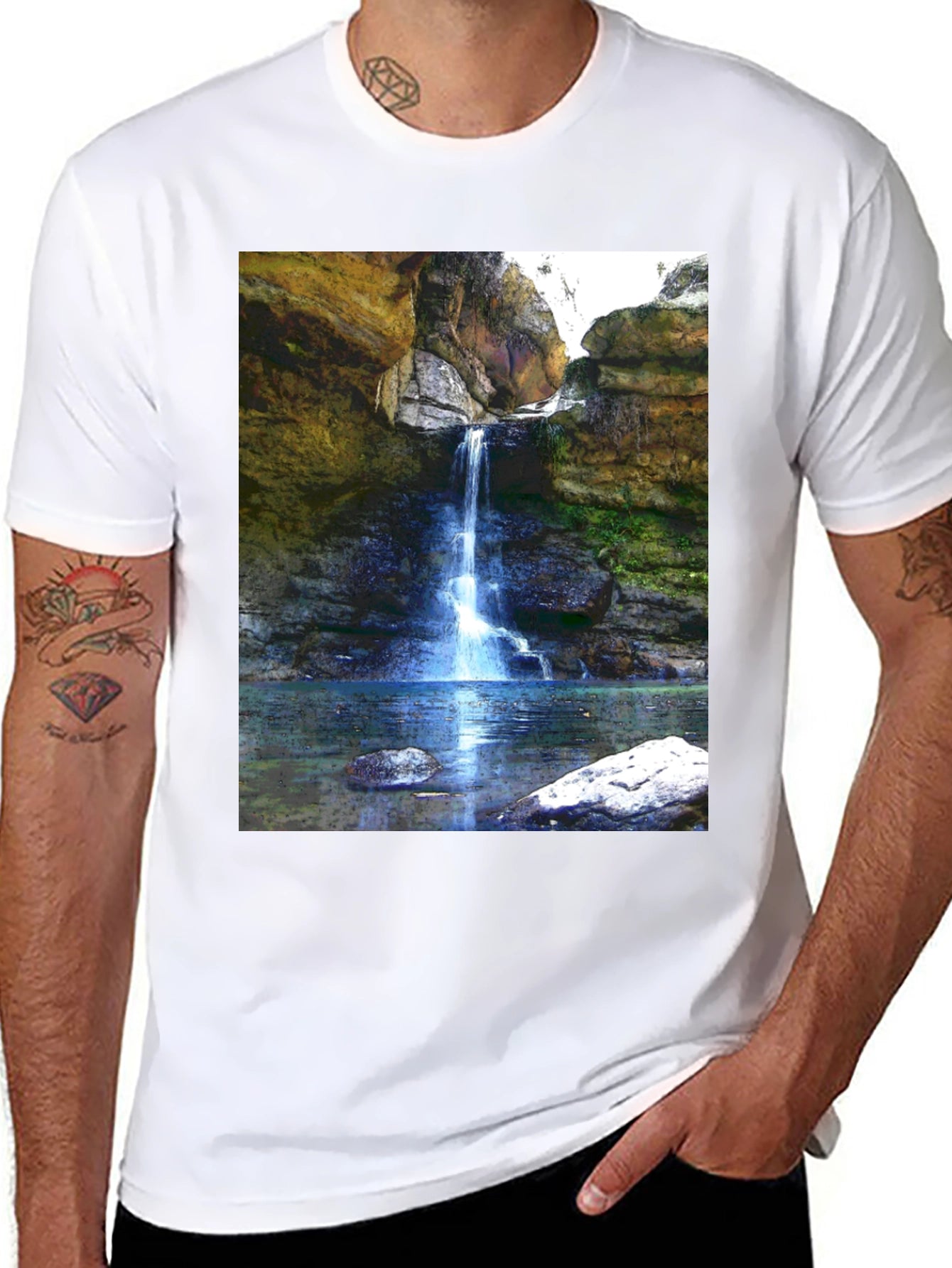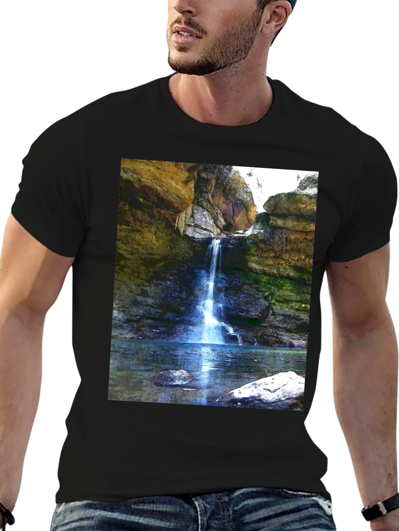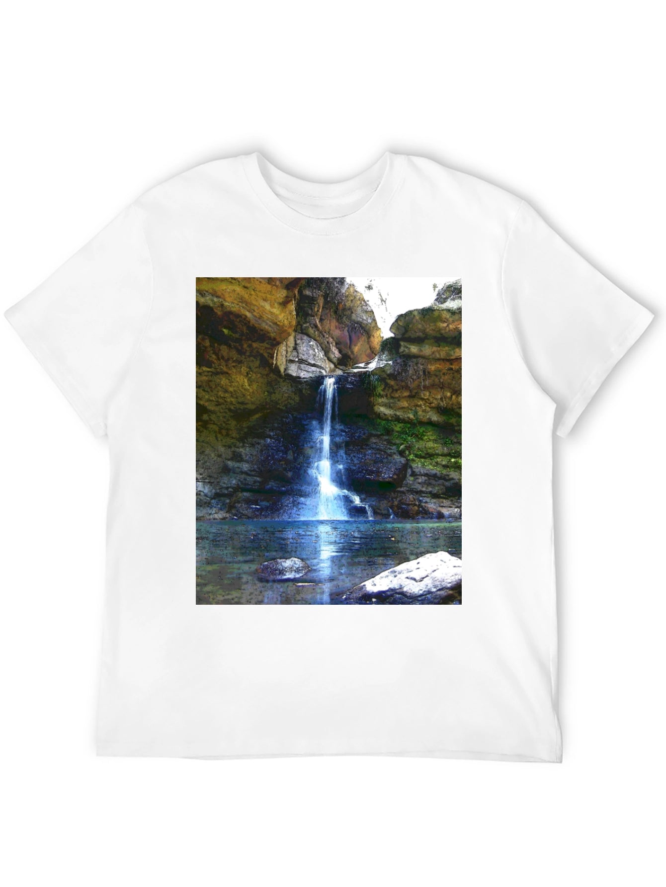 Embrace nature's beauty with this striking graphic tee. Featuring a vivid image of a waterfall cascading into a serene pool, this shirt brings a touch of the outdoors to your wardrobe. The high-quality print captures the stunning rock formations and lush greenery, creating a realistic and eye-catching design. Made from soft, breathable cotton, this tee ensures all-day comfort and style. Perfect for casual outings, hiking adventures, or simply expressing your love for nature, this waterfall graphic tee is a must-have addition to your collection. Stand out with this unique and visually appealing piece!