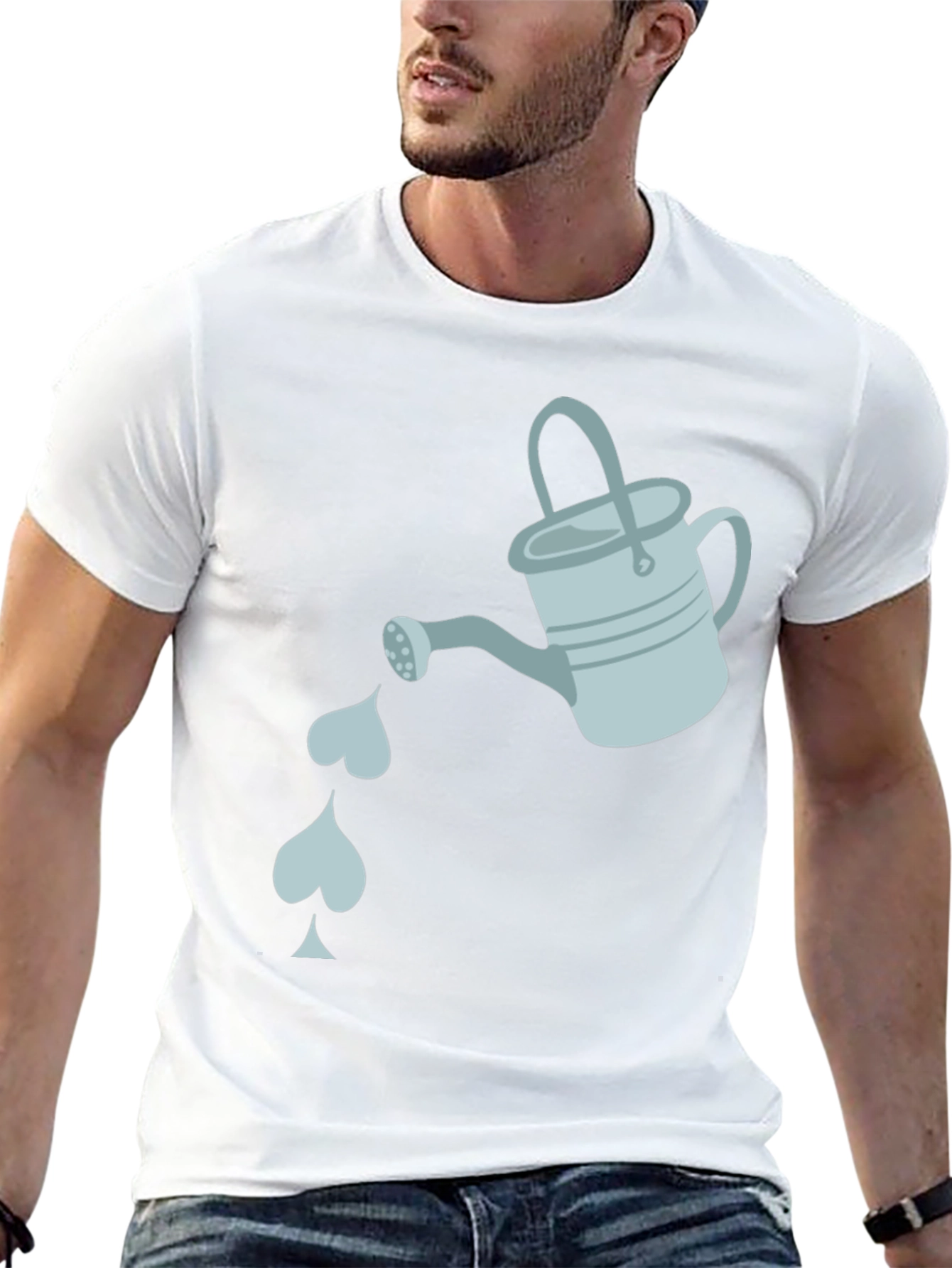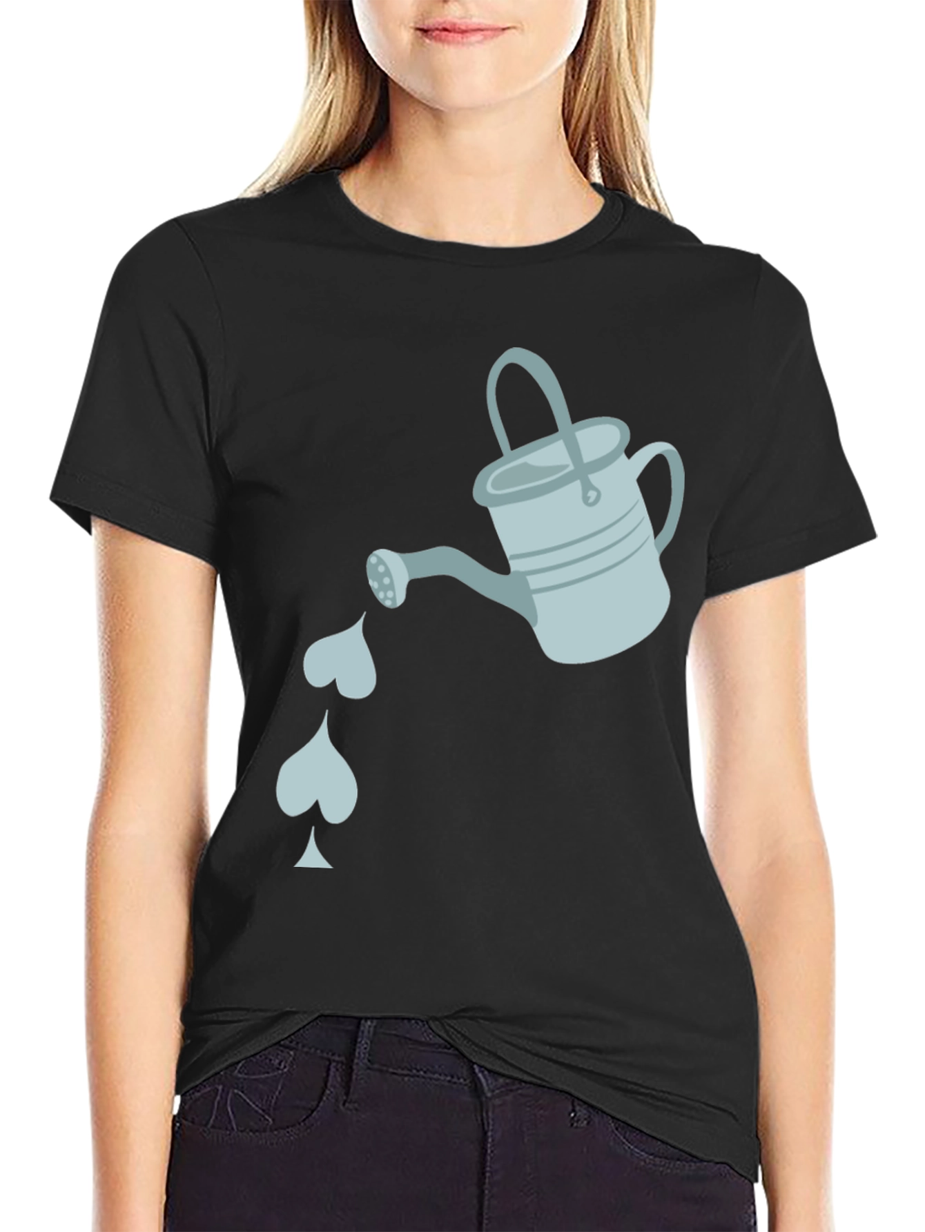 Show off your love for gardening with this unique graphic tee. The design features a light blue watering can with heart-shaped water droplets, adding a touch of charm to your casual style. Made from a comfortable, likely breathable fabric, this black t-shirt is perfect for everyday wear. The print is eye-catching and unique, sure to spark conversations. Ideal for gardeners, plant lovers, or anyone who appreciates creative designs. Pair it with your favorite jeans or shorts for a relaxed, stylish look. A must-have addition to any wardrobe!