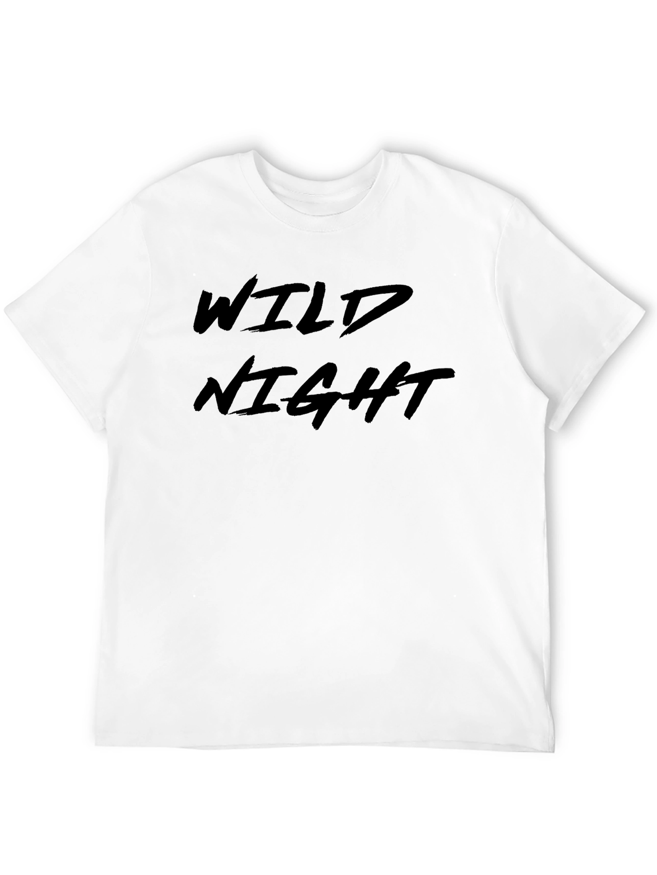 Embrace the thrill of the night with this bold black t-shirt. Featuring the words "Wild Night" emblazoned across the chest in a striking font, this tee is perfect for those who love adventure and excitement. Made from a comfortable-looking cotton blend, it's ideal for casual wear, concerts, or a night out with friends. The classic fit ensures a flattering silhouette, while the soft fabric provides all-day comfort. Make a statement and unleash your wild side with this must-have graphic tee.