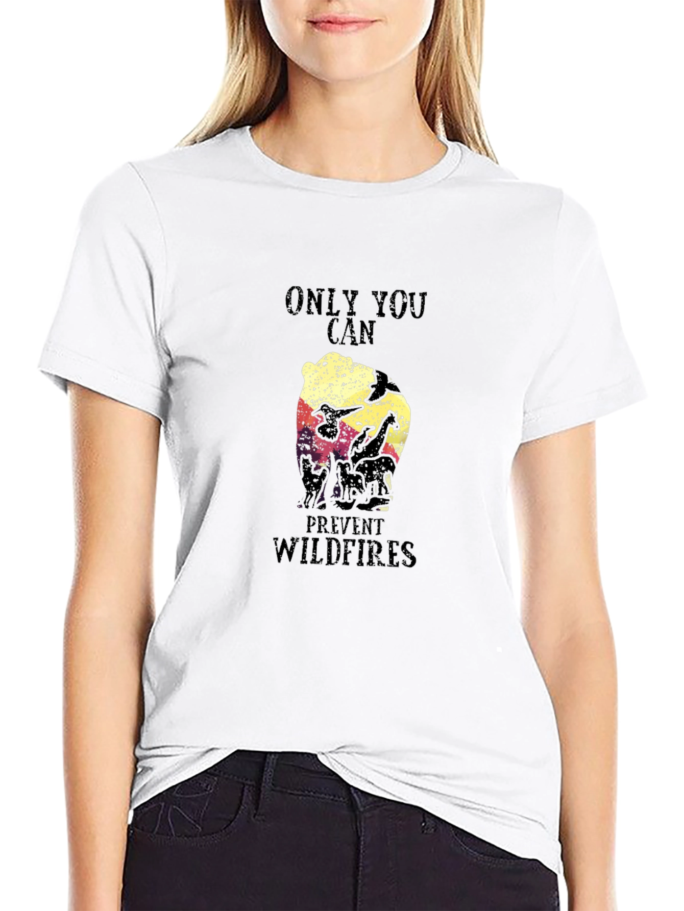 Show your support for wildfire prevention with this graphic tee. The shirt features an image of a bear and the phrase "Only You Can Prevent Wildfires." Made from a comfortable fabric, this tee is perfect for everyday wear. Whether you're hiking in the mountains or just running errands around town, this shirt will help spread the word about the importance of preventing wildfires. A must-have for nature lovers and advocates. Available in a variety of sizes. Get yours today and make a statement!