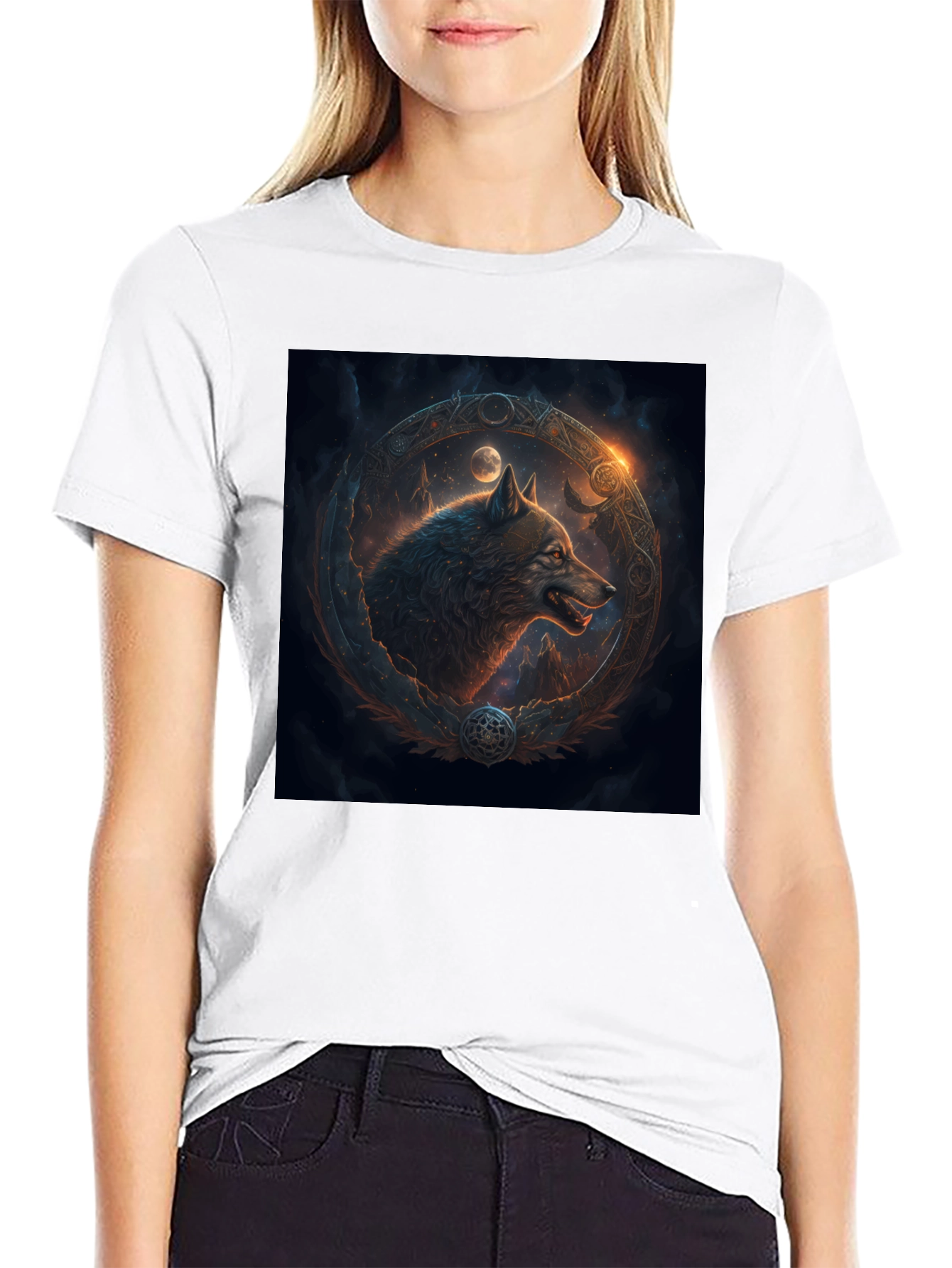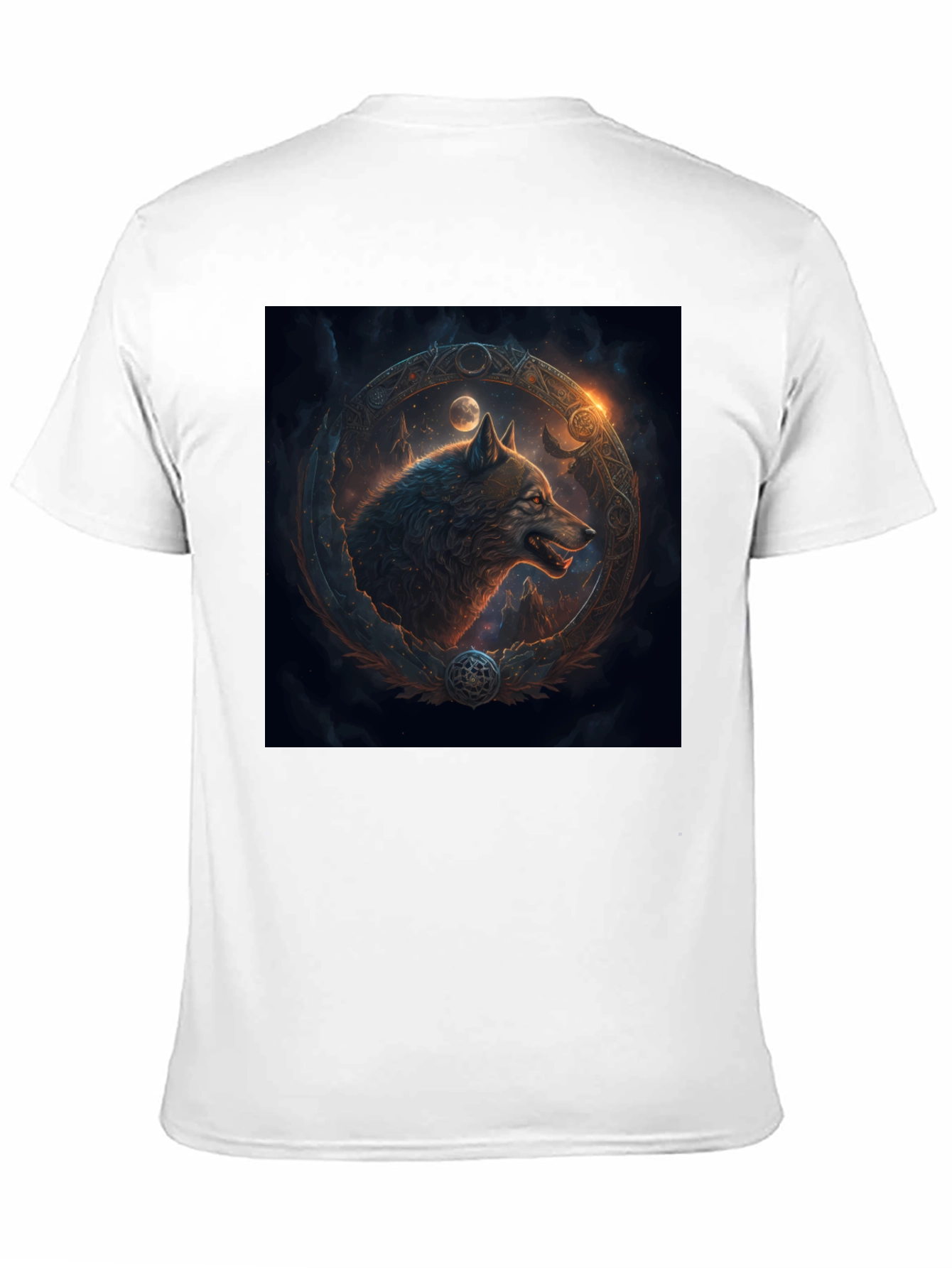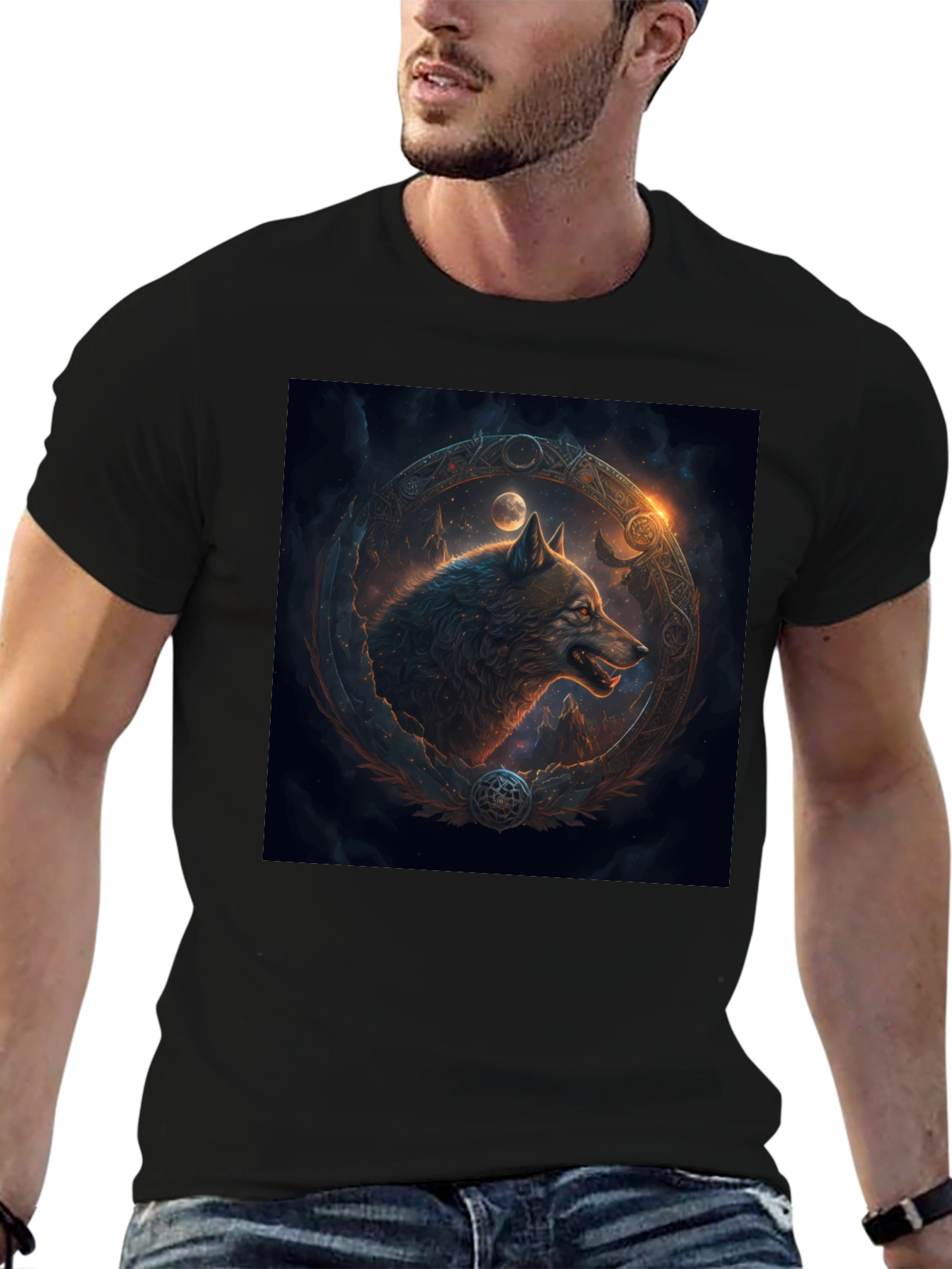 Showcase your love for the majestic wolf with this striking black tee. The t-shirt features a detailed image of a wolf surrounded by art. The design is printed on soft fabric, ensuring all-day comfort. The tee's dark color makes the graphic pop, making it a standout piece in any wardrobe. Perfect for casual outings, nature lovers, or as a unique gift. Elevate your style with this amazing tee.