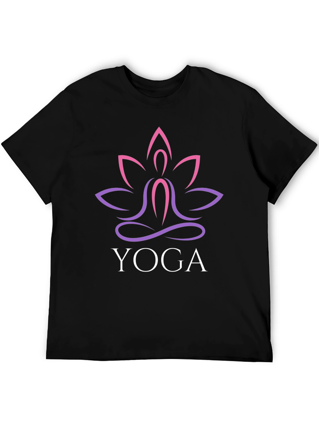 Find your inner peace with this stylish black t-shirt featuring a vibrant yoga lotus design. The graphic incorporates shades of pink and purple, creating a visually appealing and calming aesthetic. Made from a comfortable fabric, this tee is perfect for yoga sessions, casual wear, or simply relaxing at home. Show off your passion for mindfulness and wellness with this unique and eye-catching piece. Let this stylish tee be a reminder of your yoga journey, providing comfort and a touch of zen wherever you go. Perfect for gifting or adding to your own collection!