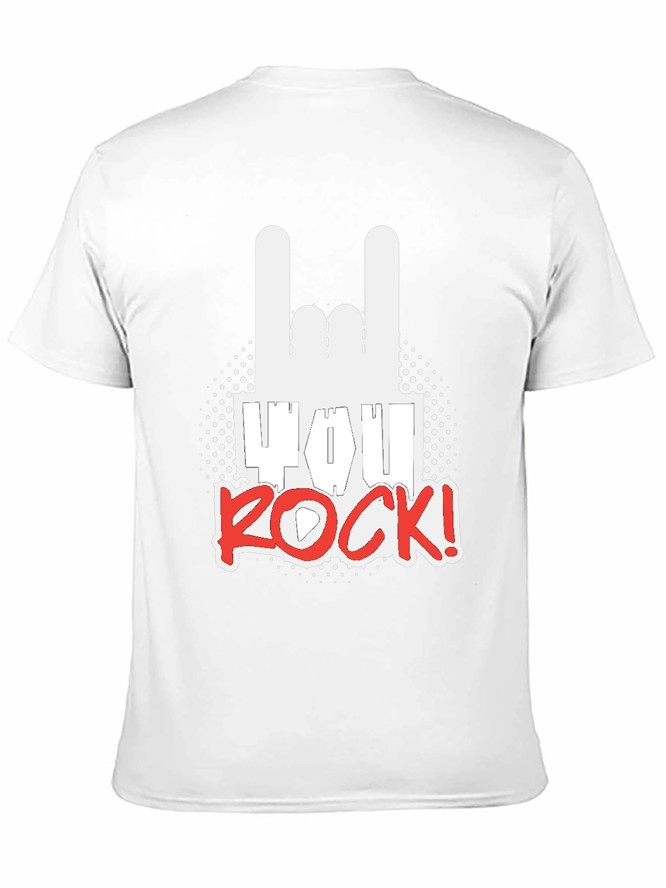Show off your love for rock music with this stylish black graphic T-shirt. Featuring a bold white "rock on" hand gesture and the words "YOU ROCK!" in vibrant red, this tee is sure to make a statement. The design includes a unique dotted background, adding an edgy touch to the overall look. Made from a comfortable and breathable fabric, this shirt is perfect for casual wear, concerts, or simply expressing your passion for music. Get ready to rock and roll in style with this eye-catching T-shirt!